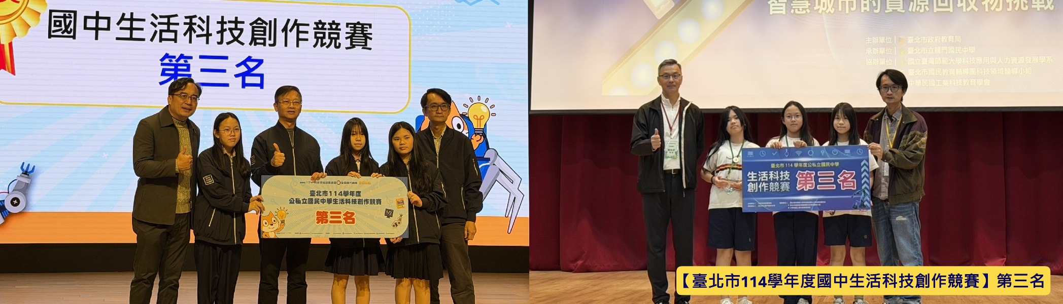 | 2026-04-24 | 置頂本校204郭芷妤、李鎧帆、劉耕輔、楊 紹 宇、羅子堯榮獲【114年臺北市參與式預算高中職推廣教育課程模擬提案】優選 | 榮譽榜 | 訓育組 | 36 |