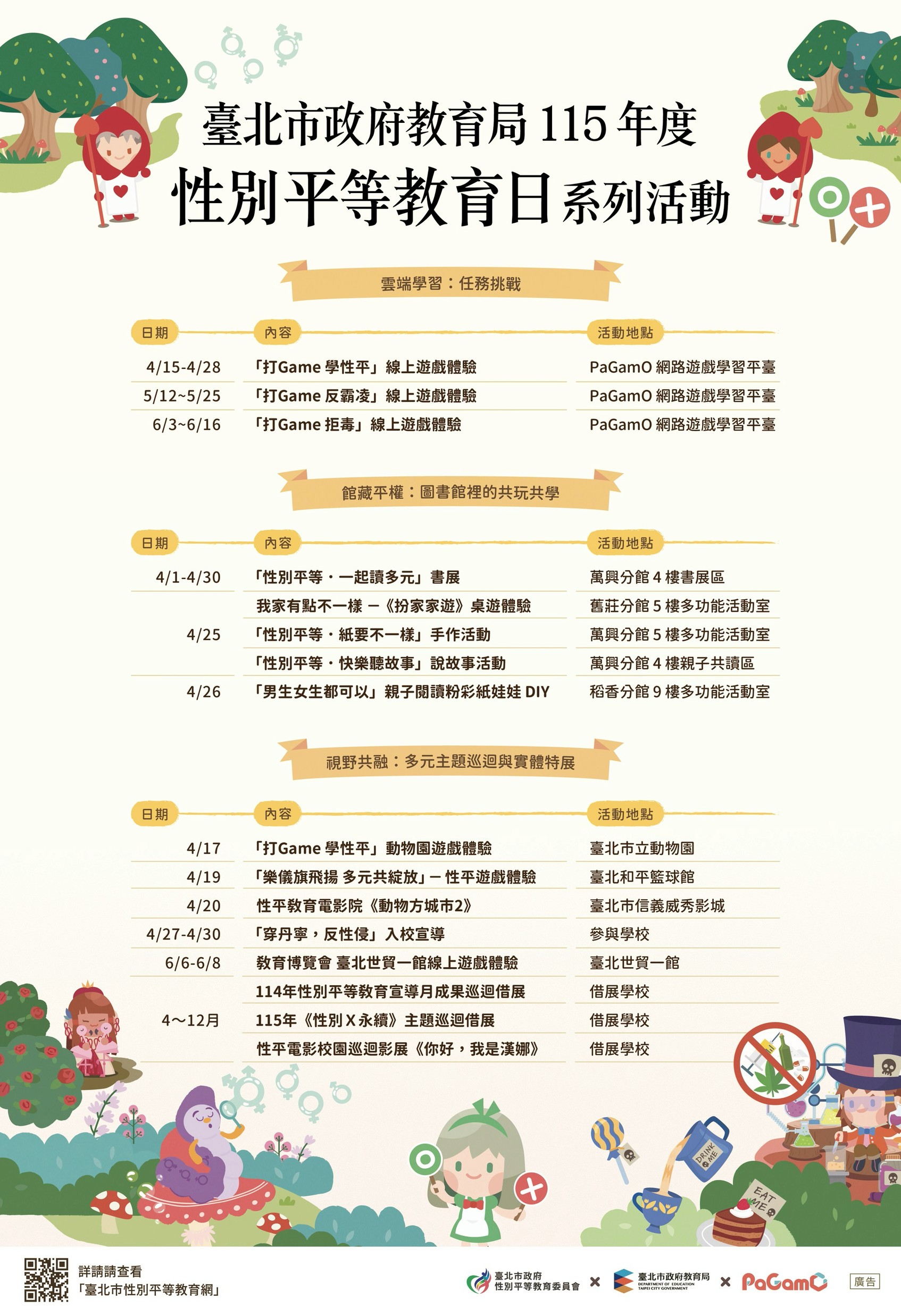 四、檢附115年性別平等日系列活動海報、115性平教育電影院實施計畫各1份。